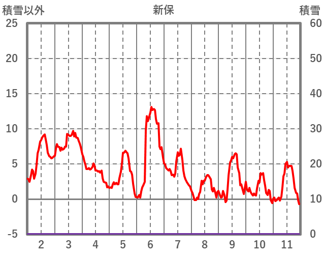 | 日 | 時 | 気温 | 降水 | 風向/風速 | 日照 | 積雪 | 降雪 |