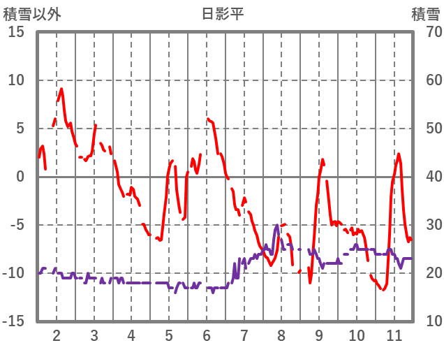 | 日 | 時 | 気温 | 降水 | 風向/風速 | 日照 | 積雪 | 降雪 |