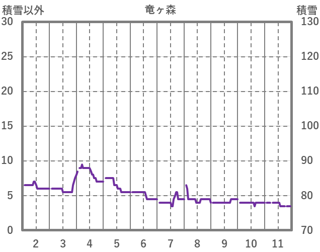 | 日 | 時 | 気温 | 降水 | 風向/風速 | 日照 | 積雪 | 降雪 |