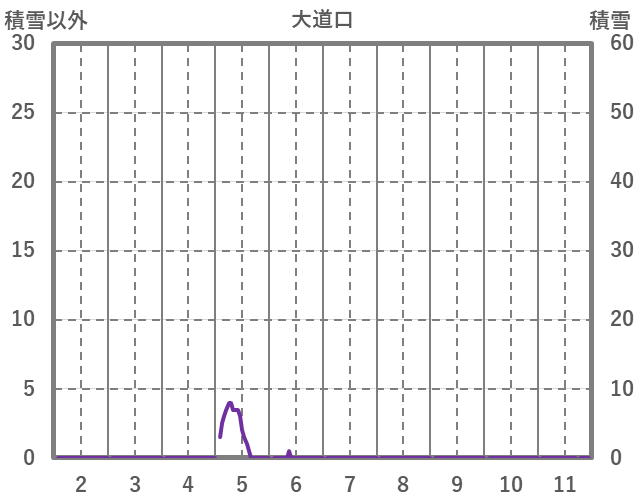 | 日 | 時 | 気温 | 降水 | 風向/風速 | 日照 | 積雪 | 降雪 |