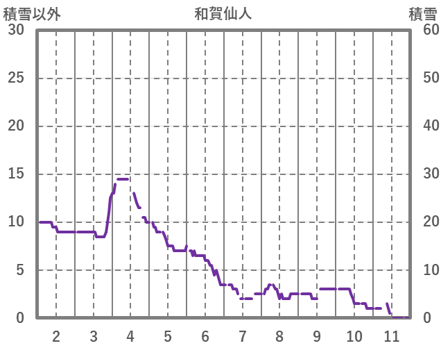 | 日 | 時 | 気温 | 降水 | 風向/風速 | 日照 | 積雪 | 降雪 |