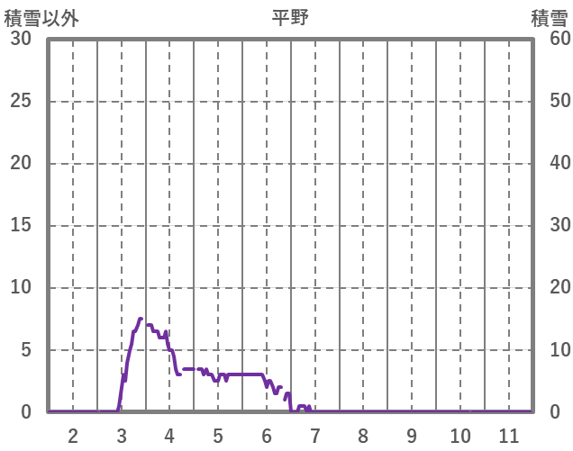 | 日 | 時 | 気温 | 降水 | 風向/風速 | 日照 | 積雪 | 降雪 |