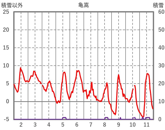 | 日 | 時 | 気温 | 降水 | 風向/風速 | 日照 | 積雪 | 降雪 |