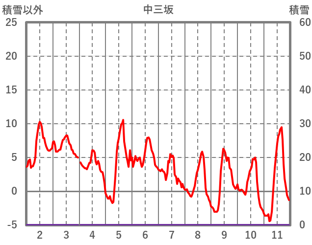 | 日 | 時 | 気温 | 降水 | 風向/風速 | 日照 | 積雪 | 降雪 |