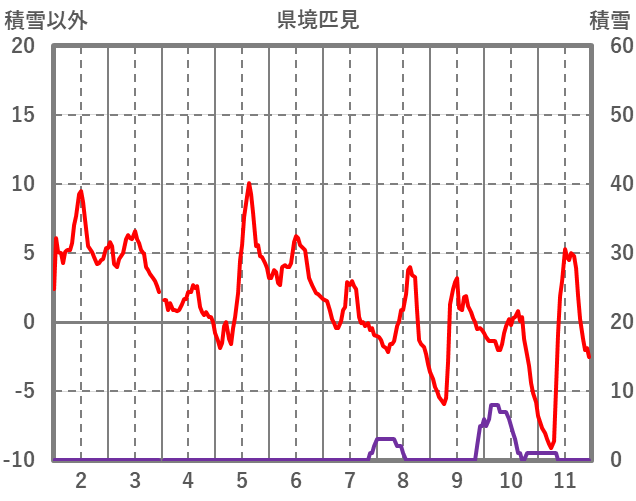 | 日 | 時 | 気温 | 降水 | 風向/風速 | 日照 | 積雪 | 降雪 |