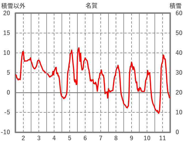 | 日 | 時 | 気温 | 降水 | 風向/風速 | 日照 | 積雪 | 降雪 |