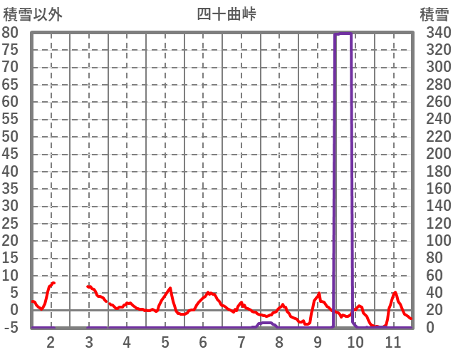 | 日 | 時 | 気温 | 降水 | 風向/風速 | 日照 | 積雪 | 降雪 |