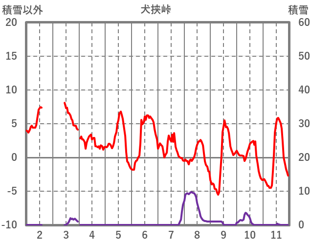 | 日 | 時 | 気温 | 降水 | 風向/風速 | 日照 | 積雪 | 降雪 |