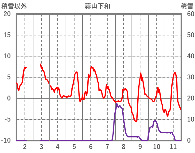 | 日 | 時 | 気温 | 降水 | 風向/風速 | 日照 | 積雪 | 降雪 |