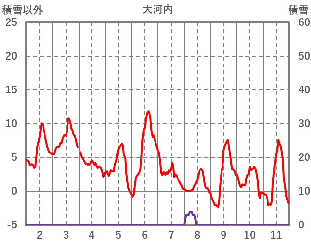| 日 | 時 | 気温 | 降水 | 風向/風速 | 日照 | 積雪 | 降雪 |