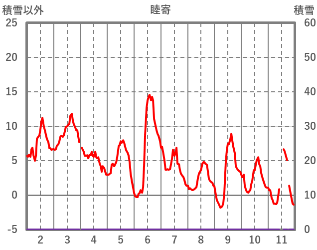 | 日 | 時 | 気温 | 降水 | 風向/風速 | 日照 | 積雪 | 降雪 |