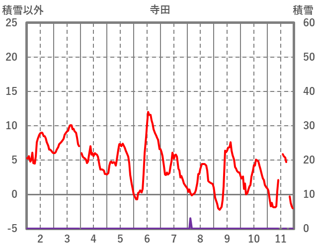 | 日 | 時 | 気温 | 降水 | 風向/風速 | 日照 | 積雪 | 降雪 |