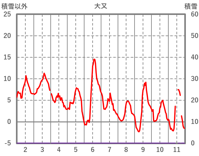 | 日 | 時 | 気温 | 降水 | 風向/風速 | 日照 | 積雪 | 降雪 |