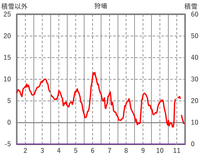 | 日 | 時 | 気温 | 降水 | 風向/風速 | 日照 | 積雪 | 降雪 |