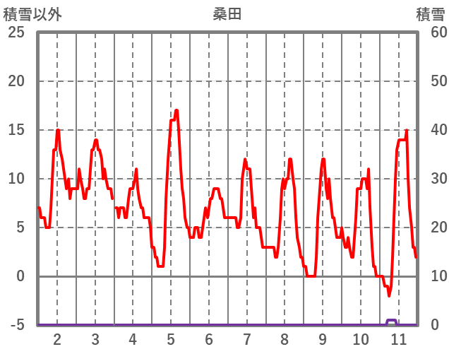 | 日 | 時 | 気温 | 降水 | 風向/風速 | 日照 | 積雪 | 降雪 |