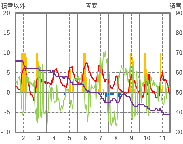| 日 | 時 | 気温 | 降水 | 風向/風速 | 日照 | 積雪 | 降雪 |