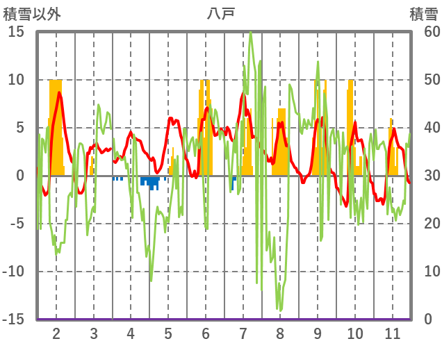 | 日 | 時 | 気温 | 降水 | 風向/風速 | 日照 | 積雪 | 降雪 |