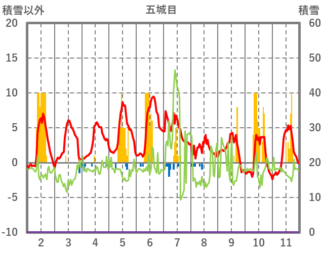 | 日 | 時 | 気温 | 降水 | 風向/風速 | 日照 | 積雪 | 降雪 |