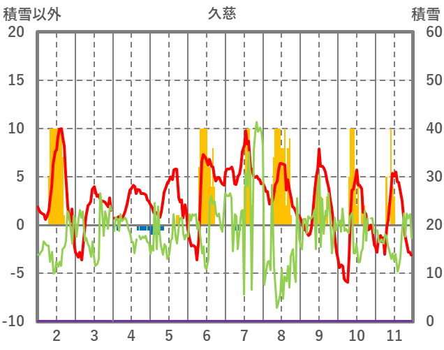 | 日 | 時 | 気温 | 降水 | 風向/風速 | 日照 | 積雪 | 降雪 |