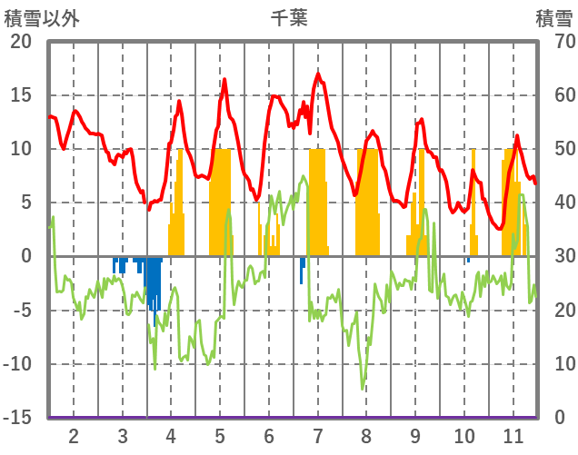 | 日 | 時 | 気温 | 降水 | 風向/風速 | 日照 | 積雪 | 降雪 |