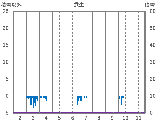 | 日 | 時 | 気温 | 降水 | 風向/風速 | 日照 | 積雪 | 降雪 |