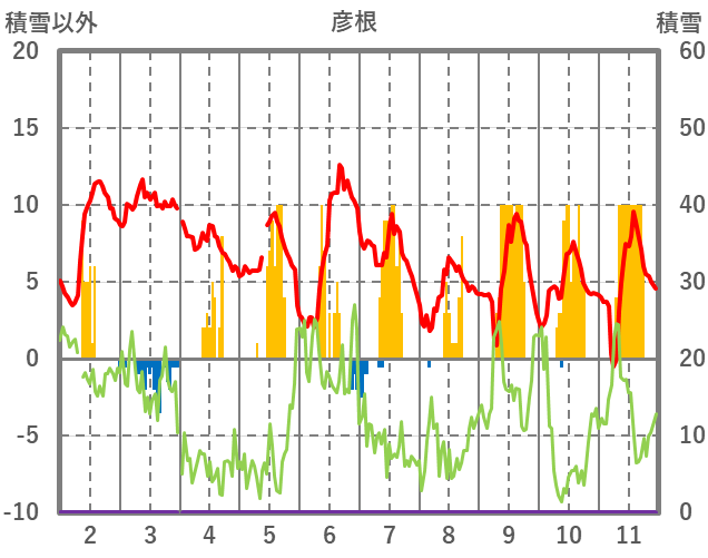 | 日 | 時 | 気温 | 降水 | 風向/風速 | 日照 | 積雪 | 降雪 |