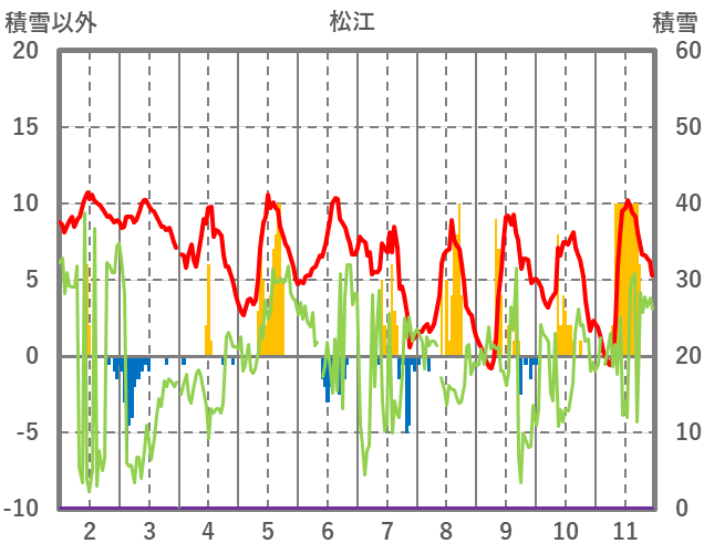 | 日 | 時 | 気温 | 降水 | 風向/風速 | 日照 | 積雪 | 降雪 |