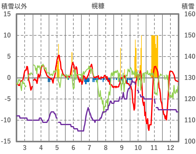 | 日 | 時 | 気温 | 降水 | 風向/風速 | 日照 | 積雪 | 降雪 |