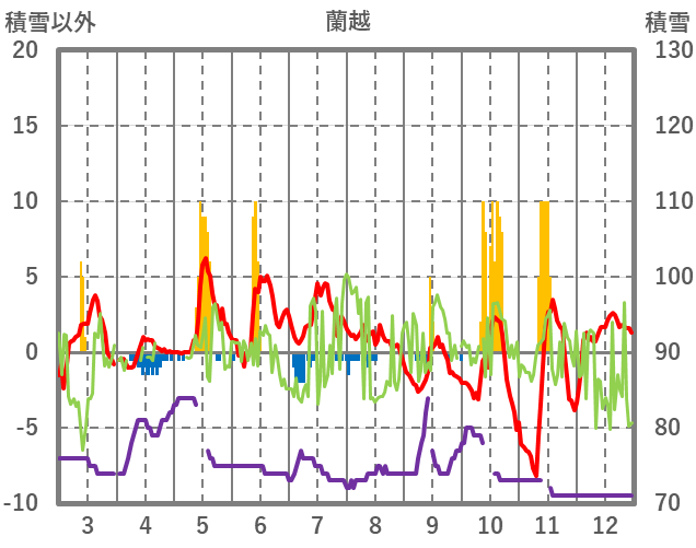 | 日 | 時 | 気温 | 降水 | 風向/風速 | 日照 | 積雪 | 降雪 |