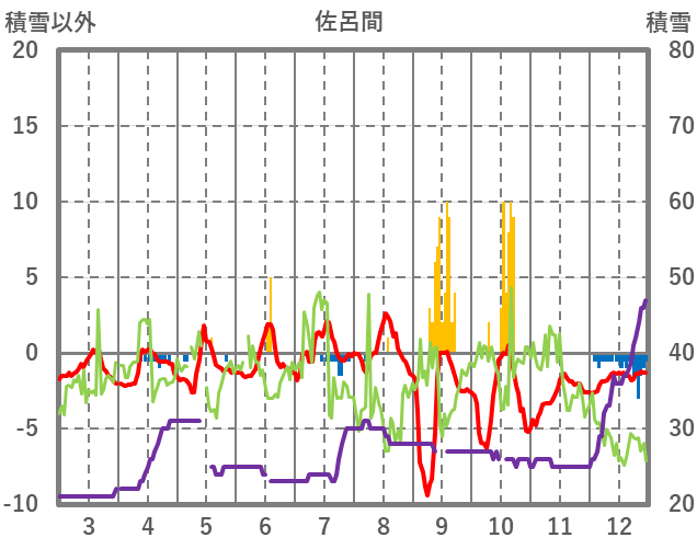| 日 | 時 | 気温 | 降水 | 風向/風速 | 日照 | 積雪 | 降雪 |