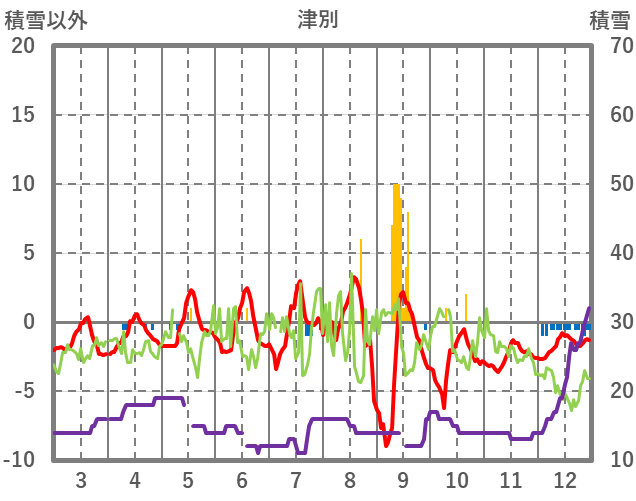 | 日 | 時 | 気温 | 降水 | 風向/風速 | 日照 | 積雪 | 降雪 |