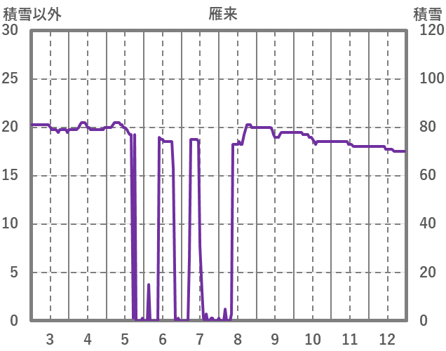 | 日 | 時 | 気温 | 降水 | 風向/風速 | 日照 | 積雪 | 降雪 |