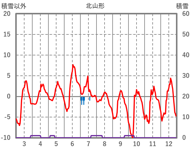 | 日 | 時 | 気温 | 降水 | 風向/風速 | 日照 | 積雪 | 降雪 |