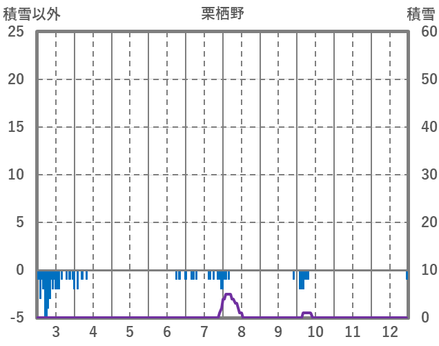 | 日 | 時 | 気温 | 降水 | 風向/風速 | 日照 | 積雪 | 降雪 |