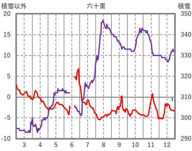| 日 | 時 | 気温 | 降水 | 風向/風速 | 日照 | 積雪 | 降雪 |