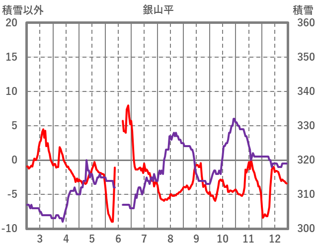 | 日 | 時 | 気温 | 降水 | 風向/風速 | 日照 | 積雪 | 降雪 |