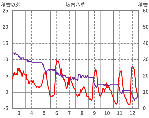 | 日 | 時 | 気温 | 降水 | 風向/風速 | 日照 | 積雪 | 降雪 |