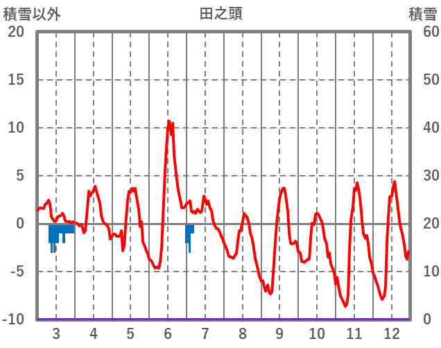 | 日 | 時 | 気温 | 降水 | 風向/風速 | 日照 | 積雪 | 降雪 |