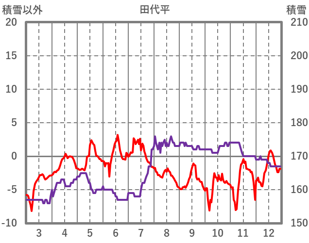 | 日 | 時 | 気温 | 降水 | 風向/風速 | 日照 | 積雪 | 降雪 |