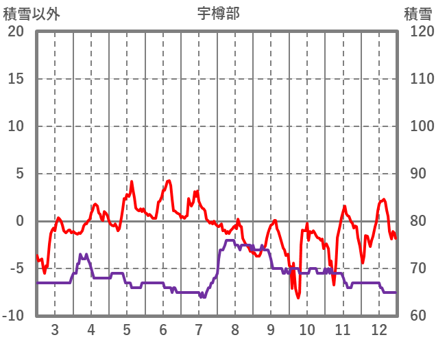 | 日 | 時 | 気温 | 降水 | 風向/風速 | 日照 | 積雪 | 降雪 |