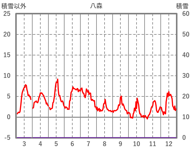 | 日 | 時 | 気温 | 降水 | 風向/風速 | 日照 | 積雪 | 降雪 |