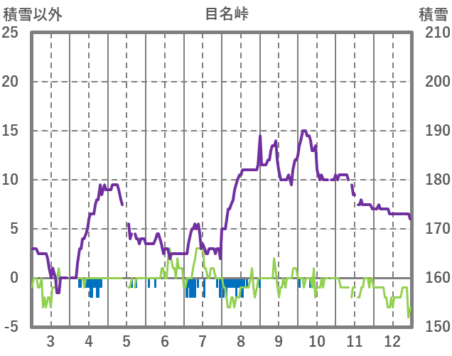 | 日 | 時 | 気温 | 降水 | 風向/風速 | 日照 | 積雪 | 降雪 |