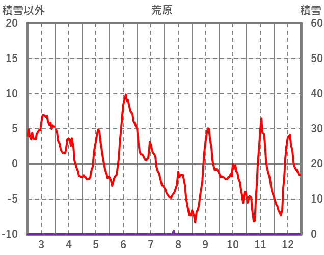 | 日 | 時 | 気温 | 降水 | 風向/風速 | 日照 | 積雪 | 降雪 |
