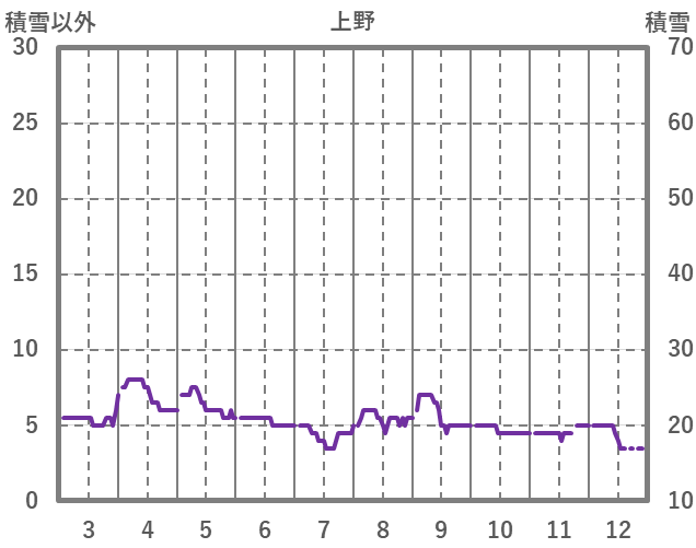 | 日 | 時 | 気温 | 降水 | 風向/風速 | 日照 | 積雪 | 降雪 |