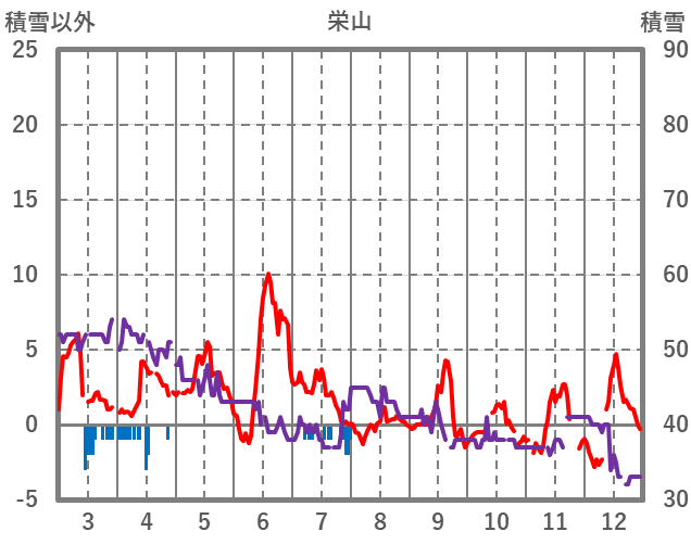 | 日 | 時 | 気温 | 降水 | 風向/風速 | 日照 | 積雪 | 降雪 |