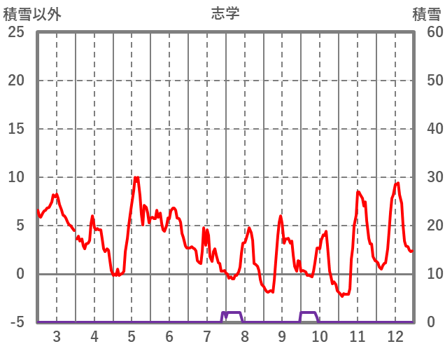 | 日 | 時 | 気温 | 降水 | 風向/風速 | 日照 | 積雪 | 降雪 |