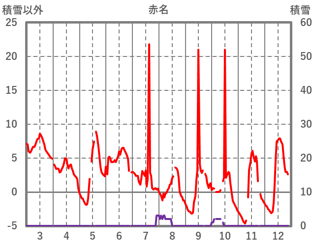 | 日 | 時 | 気温 | 降水 | 風向/風速 | 日照 | 積雪 | 降雪 |