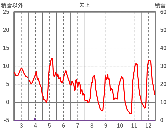 | 日 | 時 | 気温 | 降水 | 風向/風速 | 日照 | 積雪 | 降雪 |