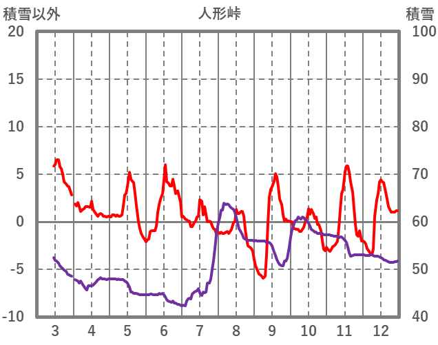 | 日 | 時 | 気温 | 降水 | 風向/風速 | 日照 | 積雪 | 降雪 |