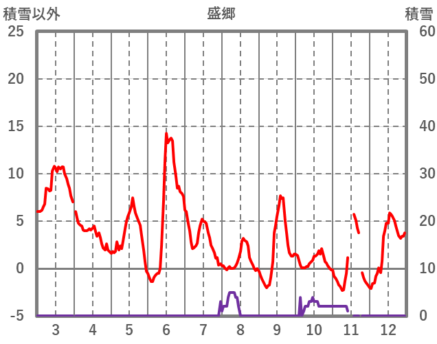 | 日 | 時 | 気温 | 降水 | 風向/風速 | 日照 | 積雪 | 降雪 |